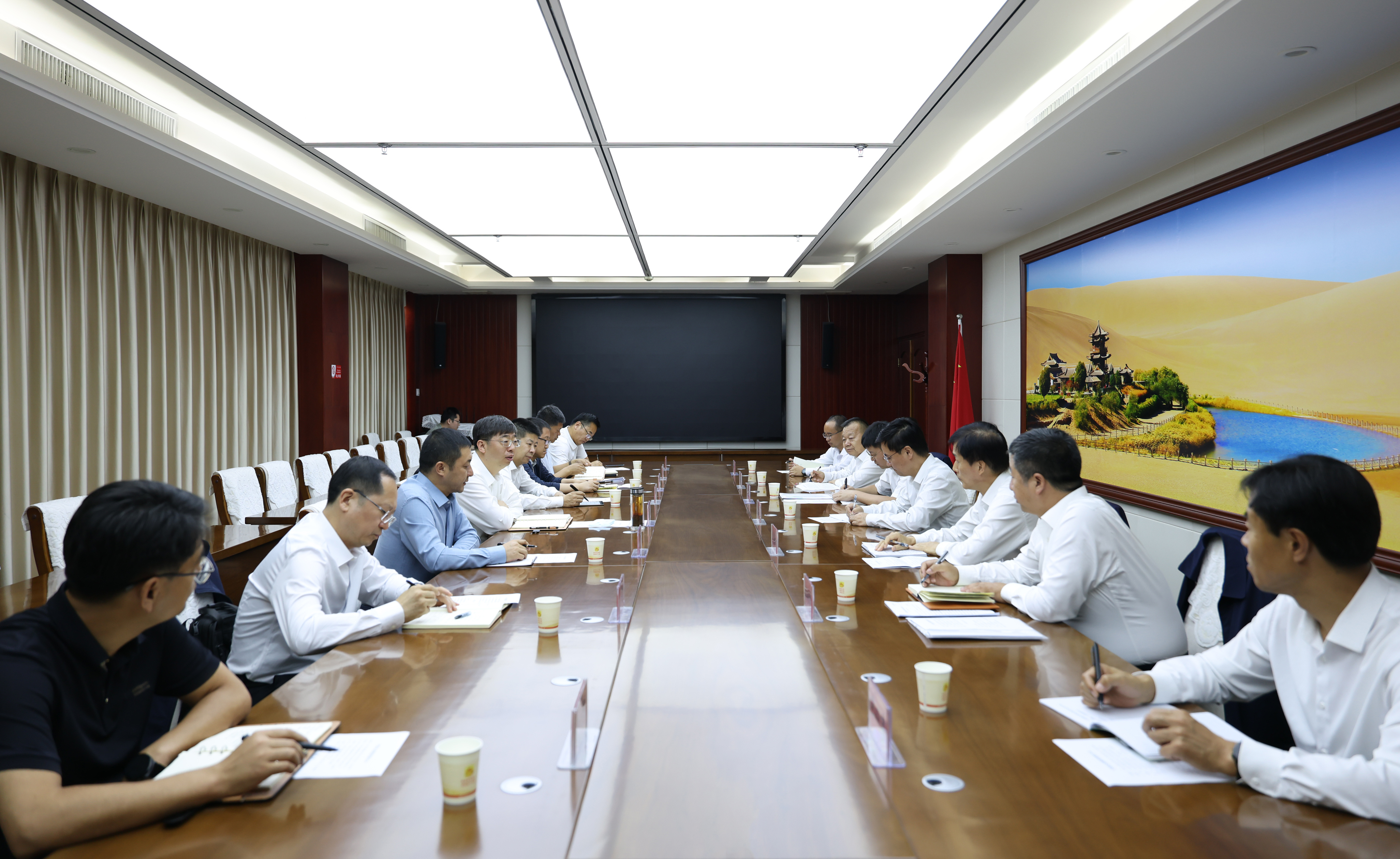 8月27日,集团公司党组成员、副总经理李建伟会见酒泉市委书记王立奇,双方就加强新能源领域项目合作、促进高质量发展事宜进行座谈交流。酒泉市委常委、敦煌市委书记王彦群参加会谈。
