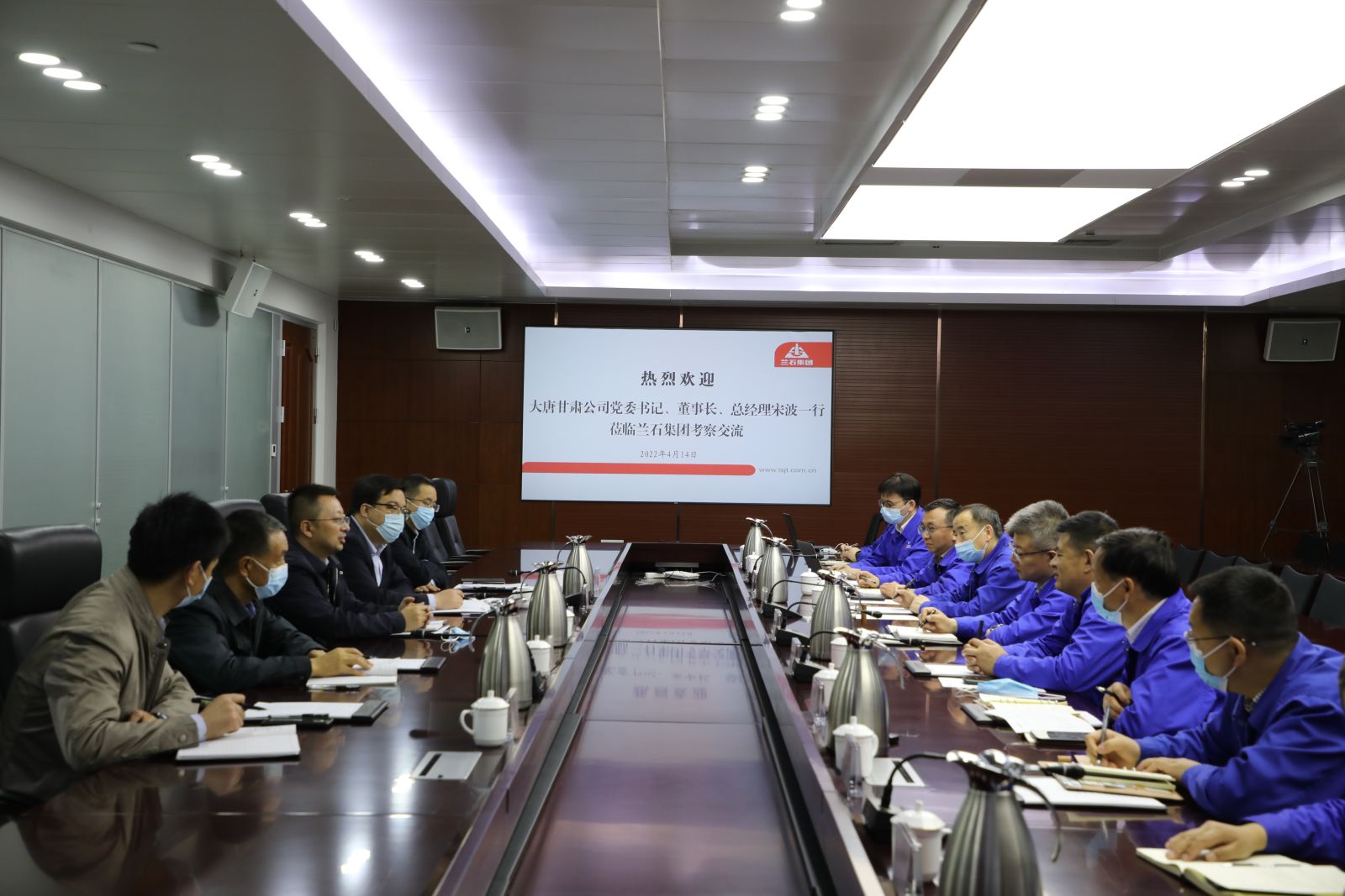 4月14日,公司党委书记、董事长、总经理宋波一行到兰州兰石集团参观交流。兰石集团党委书记、董事长阮英,党委副书记、总经理冯西平一起陪同。